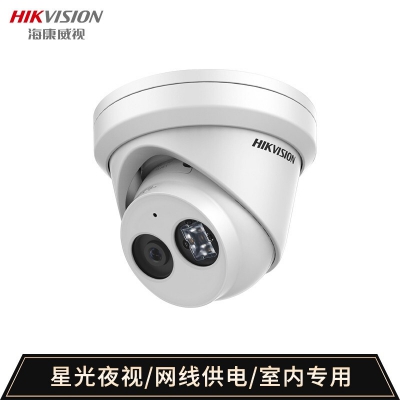 海康威视监控摄像头 400万星光级可录音 网线供电 室内半球红外夜视 高清夜视监控器DS-2CD3346FWD-IS2.8MM 自营
